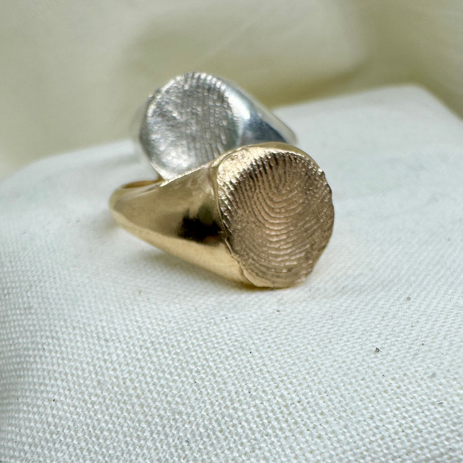Touched lader dig og dine kære sætte jeres fingeraftryk direkte på en voksmodel. Efter bestilling modtager du voksmodeller, instruktion samt returlabel. Vær omhyggelig med at få målt den rigtige ringstørrelse. Aftrykket bliver støbt og forvandlet til dit nye yndlingssmykke.